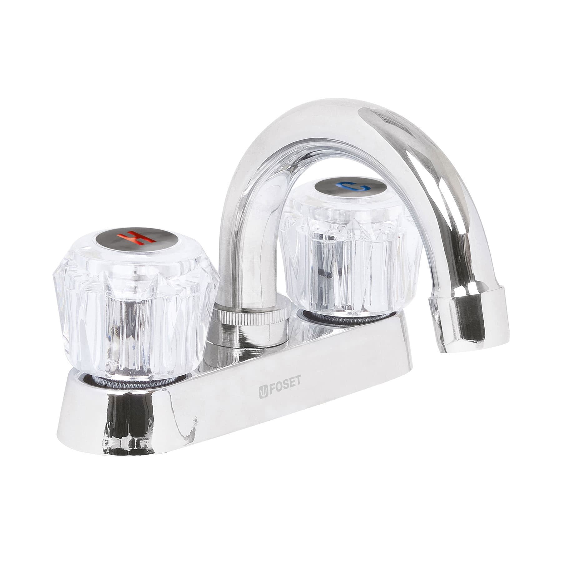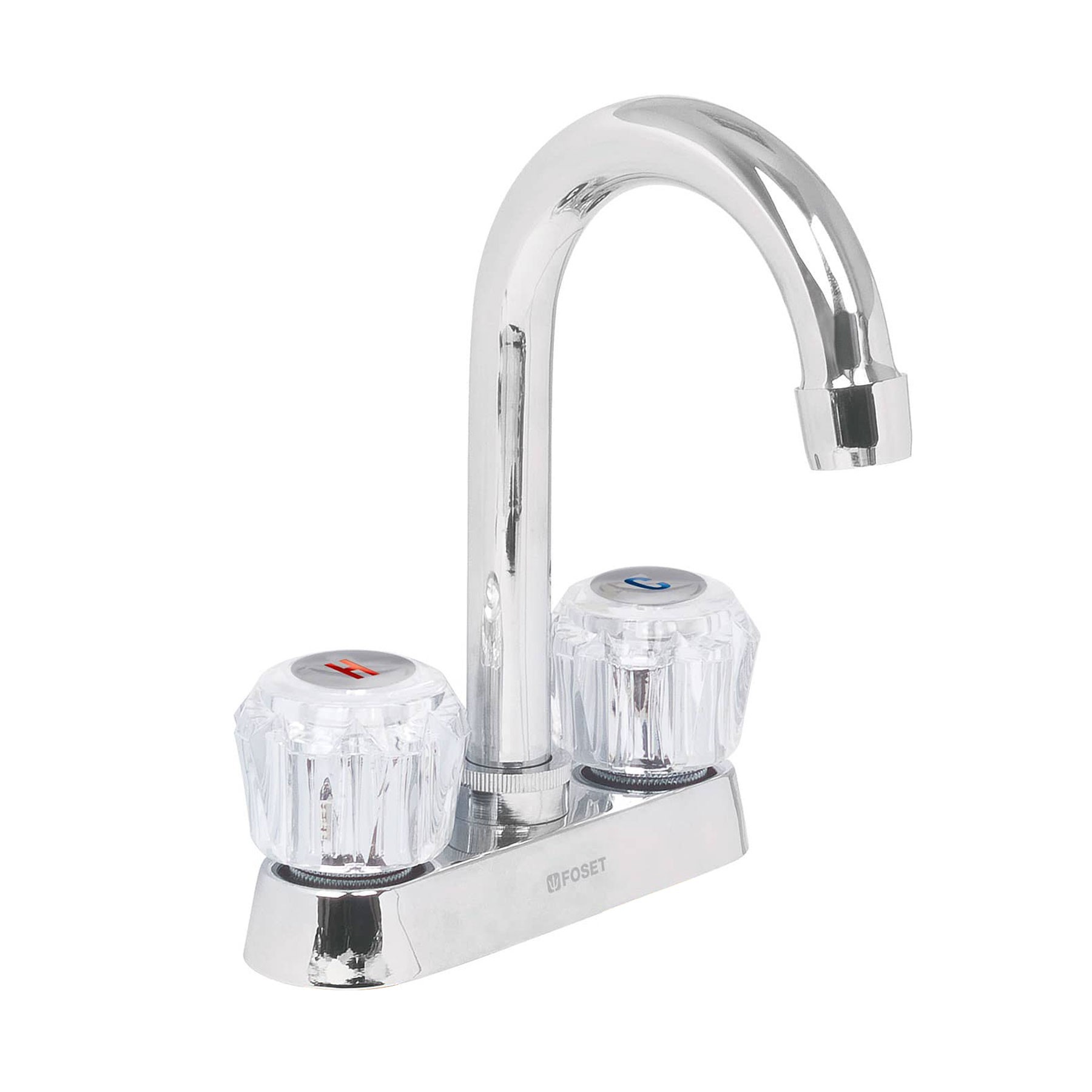 Mezcladora 4? para lavabo, cuello curvo, manerales acrílico