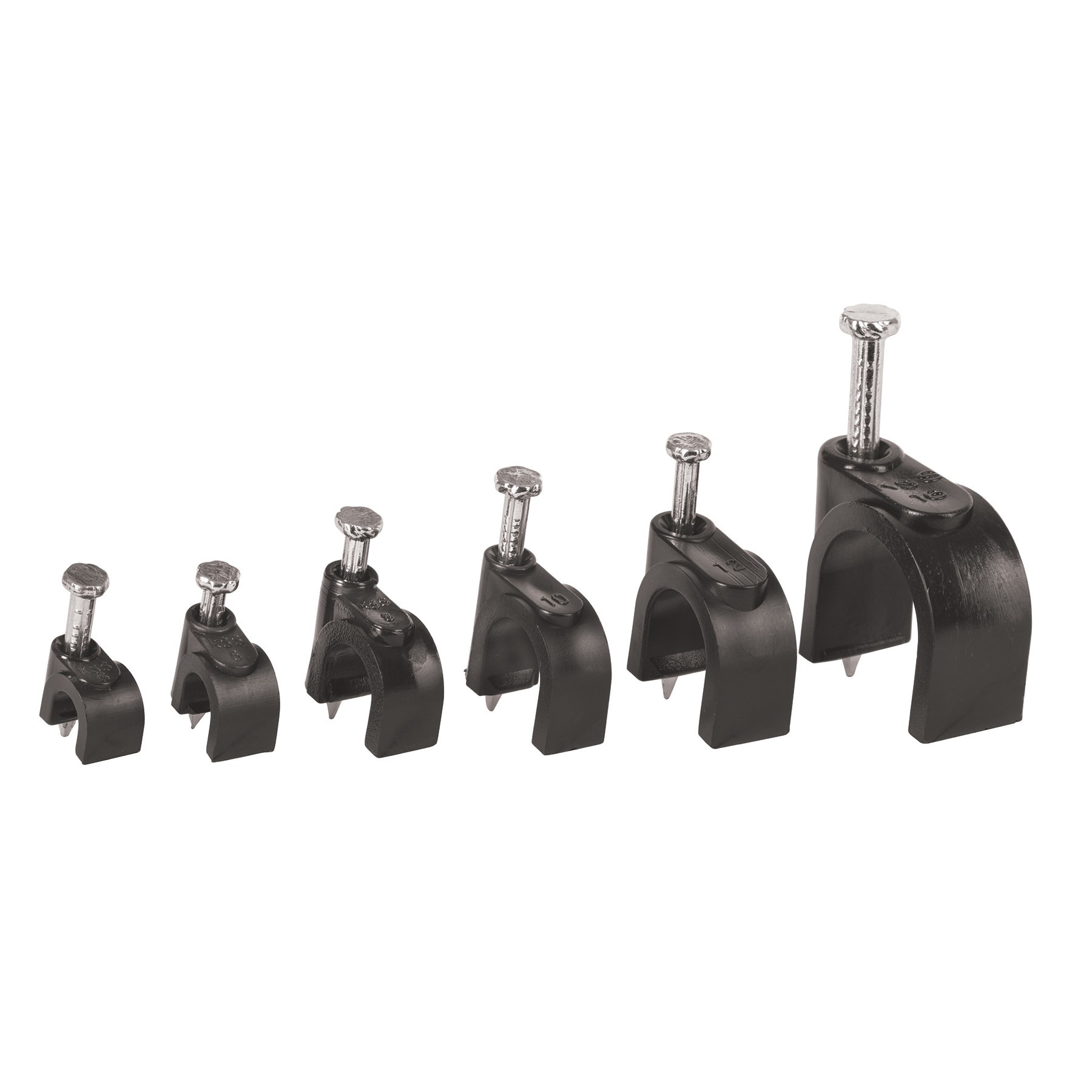 Grapas negras para cable redondo, bolsa con 20 piezas